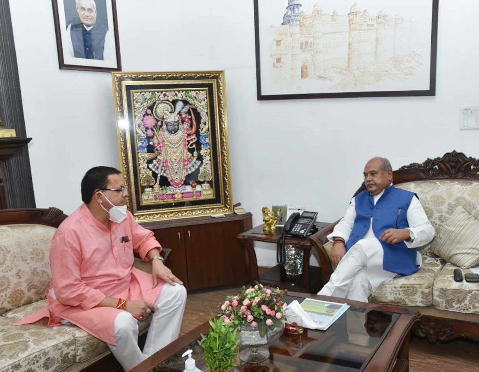 देहरादून । मुख्यमंत्री पुष्कर सिंह धामी ने नई दिल्ली में केन्द्रीय कृषि एवं किसान कल्याण मंत्री नरेन्द्र सिंह तोमर से शिष्टाचार भेंट की। मुख्यमंत्री ने राज्य में किसानों की आय में वृद्धि के लिये राज्य सरकार द्वारा किए जा रहे प्रयासों की जानकारी दी। मुख्यमंत्री ने केंद्रीय मंत्री से हिमालयी एवं पूर्वोत्तर राज्यों के लिए राष्ट्रीय सहकारी विकास निगम में अनुमन्य अनुदान को 20 प्रतिशत के स्थान पर 40 प्रतिशत करवाने का अनुरोध किया। मुख्यमंत्री ने कहा कि इससे राज्य की सहकारी संस्थाये ऋण धनराशि वहन करने में समर्थ हो सकेंगी। इससे सहकारी समितियों को व्यावसायिक इकाई के रूप में स्थापित किया जाने मदद मिलेगी। इस अवसर पर मुख्य सचिव डॉ. एस. एस. संधु, अपर मुख्य सचिव आनंद बर्द्धन, सचिव शैलेश बगोली भी उपस्थित थे।