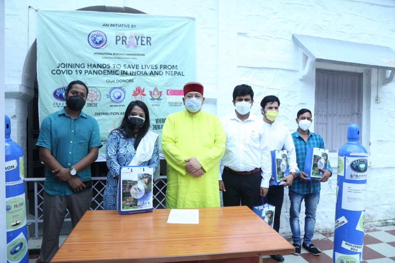 अंतरराष्ट्रीय बुद्धिस्त कौनफिडरेशन नई दिल्ली के पदाधिकारियों ने गुरुवार को प्रदेश के पर्यटन, लोक निर्माण, सिंचाई, संस्कृति, जलागम एवं धर्मस्व मंत्री सतपाल महाराज से उनके सुभाष रोड स्थित कैंप कार्यालय पर मुलाकात कर उन्हें अपनी संस्था की ओर से केयर विद प्रेयर अभियान के तहत 20 ऑक्सीजन कंसंट्रेटर एवं 50 ऑक्सीजन सिलेंडर उपलब्ध करवाएं। इस मौके पर कैबिनेट मंत्री सतपाल महाराज ने कोरोनाकाल में संस्था से मिले सहयोग के लिए संस्था के महासचिव वैनरेबल धम्पिया का आभार व्यक्त करते कहा कि निश्चित रूप से उनके इस सहयोग से जनता को एक बड़ी राहत मिलेगी और हमें कोरोना जैसी वैश्विक महामारी से निपटने में उनके द्वारा दिए गए चिकित्सा उपकरणों से बड़ा सहयोग मिलेगा। इस मौके पर अंतरराष्ट्रीय बुद्धिस्त कौनफिडरेशन नई दिल्ली संस्था के सीनियर एग्जीक्यूटिव डायरेक्टर अशोक वागड़ी, कोऑर्डिनेटर ष्केयर विद प्रेयरष् अभियान की क्षिप्रा साइमन तथा डॉक्टर मोहित आदि उपस्थित थे।