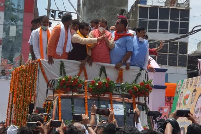 रुद्रपुर । मुख्यमंत्री बनने के बाद पहली बार सीएम पुष्कर सिंह धामी दो दिवसीय दौरे पर अपने गृह जनपद में है। ऐसे में आज जैसे ही उनका काफिला रुद्रपुर पहुंचा तो कार्यकर्ताओं ने ढोल-नगाड़ों व फूलमालाओं से उनका स्वागत किया गया। इस दौरान उन्होंने रॉड शो के माध्यम से जनता का अभिनंदन भी किया। युवा मुख्यमंत्री बनने पर बीजेपी के युवा कार्यकर्ताओं में खूब उत्साह देखा गया। इस दौरान कार्यकर्ता ढोल-नगाड़ों की थाप पर झूमते हुए नजर आए।