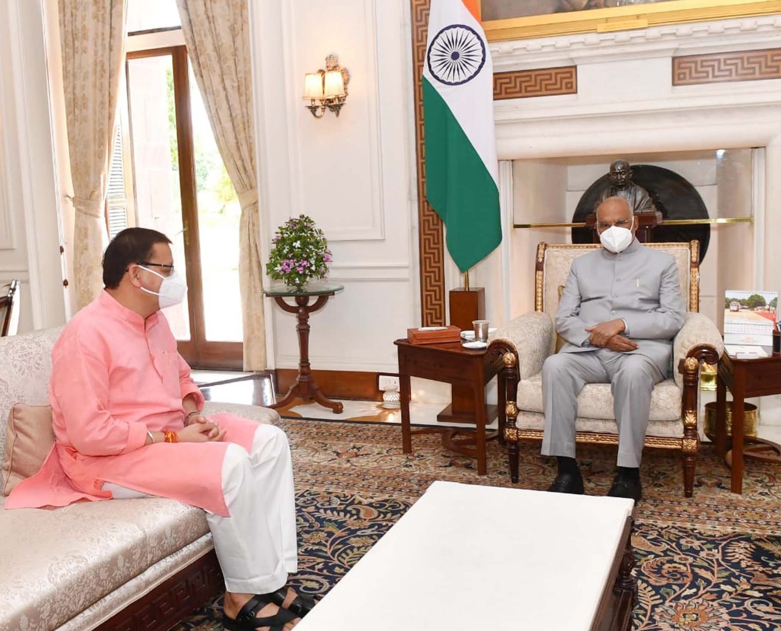 देहरादून । मुख्यमंत्री पुष्कर सिंह धामी ने नई दिल्ली में राष्ट्रपति रामनाथ कोविंद से शिष्टाचार भेंट की। मुख्यमंत्री ने राष्ट्रपति को स्मृति चिन्ह भी भेंट किया।