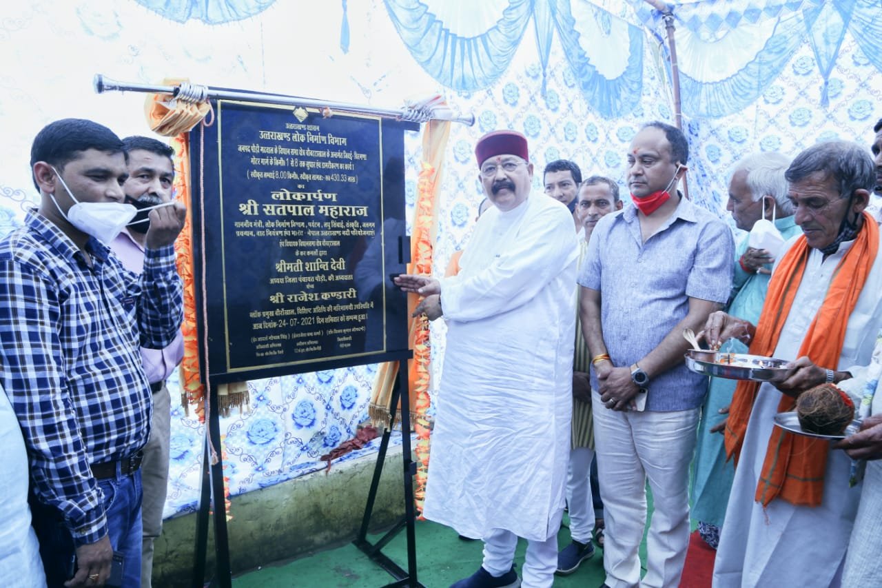 लोकार्पण, शिलान्यास और विभिन्न विकास कार्यों के निरीक्षण के दौरान स्थानीय जनता और जनप्रतिनियों को संबोधित करने से पूर्व राष्ट्रीय बौक्सिंग चैम्पियन शिप में थैलीसैण निवासी जयदीप रावत को गोल्ड मैडल मिलने प्रसन्नता व्यक्त करते हुए क्षेत्र के लिए यह गौरव की बात कही। श्री महाराज ने कहा कि पूरे राज्य में बड़ी तेजी के साथ भाजपा सरकार विकास को करने में लगी है। कोविड के कारण कुछ परेशानियां रही हैं लेकिन अब कुछ हद तक हालात सुधरे हैं। कैबिनेट मंत्री एवं स्थानीय विधायक सतपाल महाराज ने कहा कि हमने कोविड काल को देखते हुए सिंचाई विभाग में बड़े ठेकों को छोटा करके स्थानीय बेरोजगारों को रोजगार मुहैया कराने की बड़ी शुरूआत की है। इस मौके पर उनके साथ उनके सुपुत्र सुयश रावत, बीरोंखाल भाजपा मण्डल अध्यक्ष यशपाल गोर्ला, ब्लाक प्रमुख राजेश कण्डारी, पूर्व ब्लाक प्रमुख दर्शन सिंह रिगोड़ा, कविता पोखरियाल, प्रधान संघ के अध्यक्ष ओमपाल, महामंत्री मुकेश पोखरियाल, राकेश नेगी, हर्षपाल, वेद प्रकाश वर्मा, महिपाल पटवाल, मैत्री प्रकाश, योगेश बंगारी, अनूप पटवाल, ग्राम प्रधान प्रतिमा देवी, धीरेन्द्र सिंह, मोहन सिंह, सेवानिवृत्त कर्नल यशपाल नेगी सहित सिंचाई, लघु सिंचाई, पीएमजीएसवाई और लोक निर्माण के अधिकारी भी मौजूद थे।