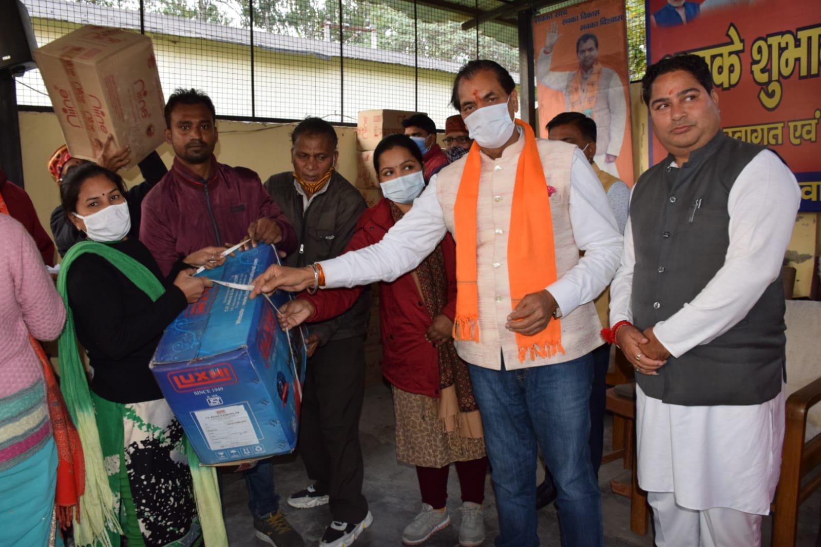 60 श्रमिकों को सिलाई मशीन एवं महिलाओं को सेनेटरी पैड वितरित किए