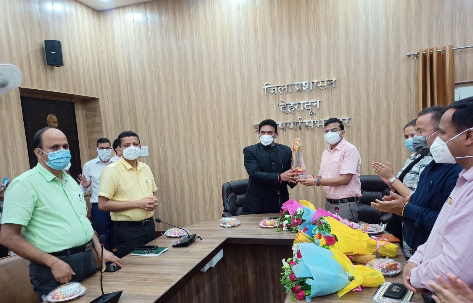 देहरादून । कलेक्टेªट सभागार में जनपद स्तरीय विभागों और कलेक्टेªट कार्मिकों द्वारा वर्तमान जिलाधिकारी डाॅ आर राजेश कुमार का स्वागत किया गया तथा निर्वतमान जिलाधिकारी डाॅ आशीष कुमार श्रीवास्तव को सम्मानजनक विदायी दी गयी।