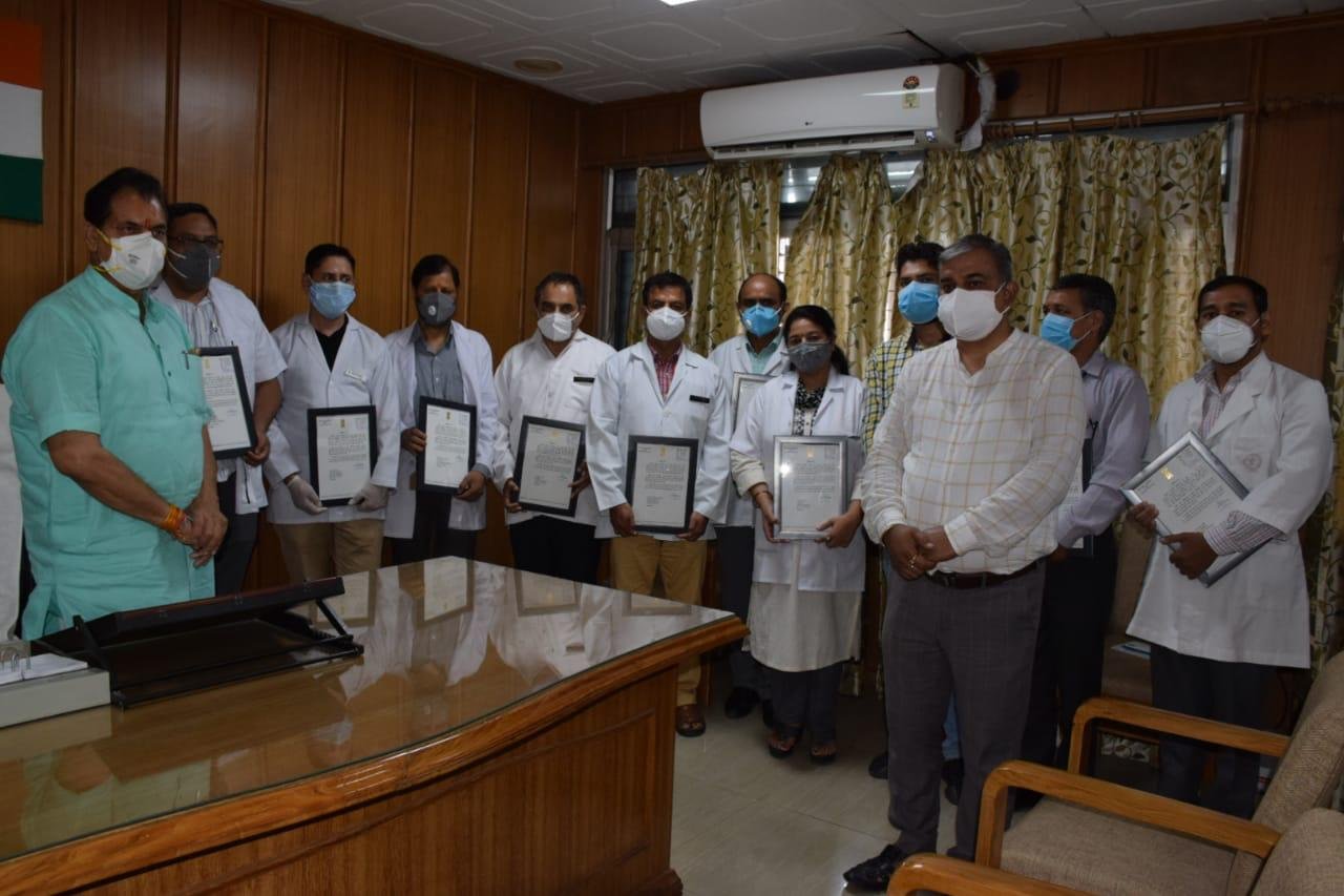 विधान सभा सचिवालय में तैनात अधिकारी कर्मचारी एवं उनके पारिवारिक सदस्य जो कोरोना संक्रमित पाए गए उन्हें उचित चिकित्सा सुविधा प्रदान कर एलोपैथिक, होम्योपैथिक एवं आयुर्वेदिक चिकित्सालय के डॉक्टर एवं मेडिकल स्टाफ द्वारा अपनी हर संभव सहायता प्रदान की गई।विधानसभा अध्यक्ष ने सभी मेडिकल स्टाफ का उत्साहवर्धन करने के उद्देश्य से डॉक्टर एवं मेडिकल स्टाफ को सम्मानित किया। विधानसभा अध्यक्ष ने कहा कि विधानसभा में स्थित चिकित्सालय के डॉक्टरों एवं मेडिकल स्टाफ द्वारा कोरोना संक्रमण की रोकथाम एवं उपचार में अपने उच्च स्तरीय सेवाएं प्रदान की गई, जिससे विधानसभा परिसर में कोरोना संक्रमण को समय रहते यथासंभव नियंत्रित किया गया।
