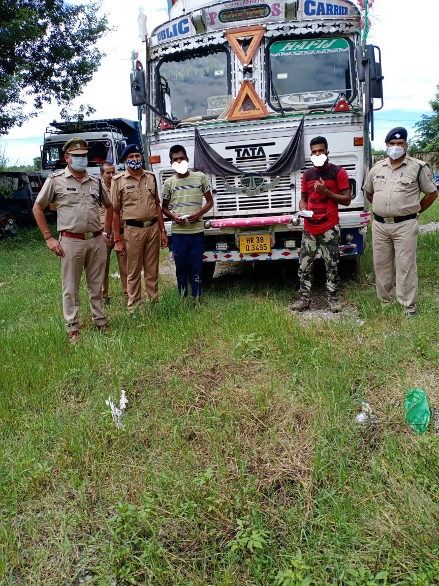 देहरादून। नशे के विरुद्ध चलाये गए अभियान मे चेकिंग के दौरान सहसपुर पुलिस 150 ग्राम स्मैक (हेरोइन) व 73 सौ रुपये नगद के साथ दो शातिर तस्कर गिरफ्तार किये। पकड़े गए तस्कर पुलिस से बचने के लिए ट्रक का इस्तेमाल तस्करी के लिए कर रहे थे। पुलिस ने एक ट्रक को भी बरामद किया।