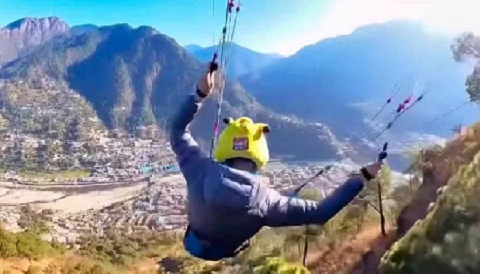 वरुणावत टॉप से दो विदेशी नागरिकों ने की पैराग्लाइडिंग..